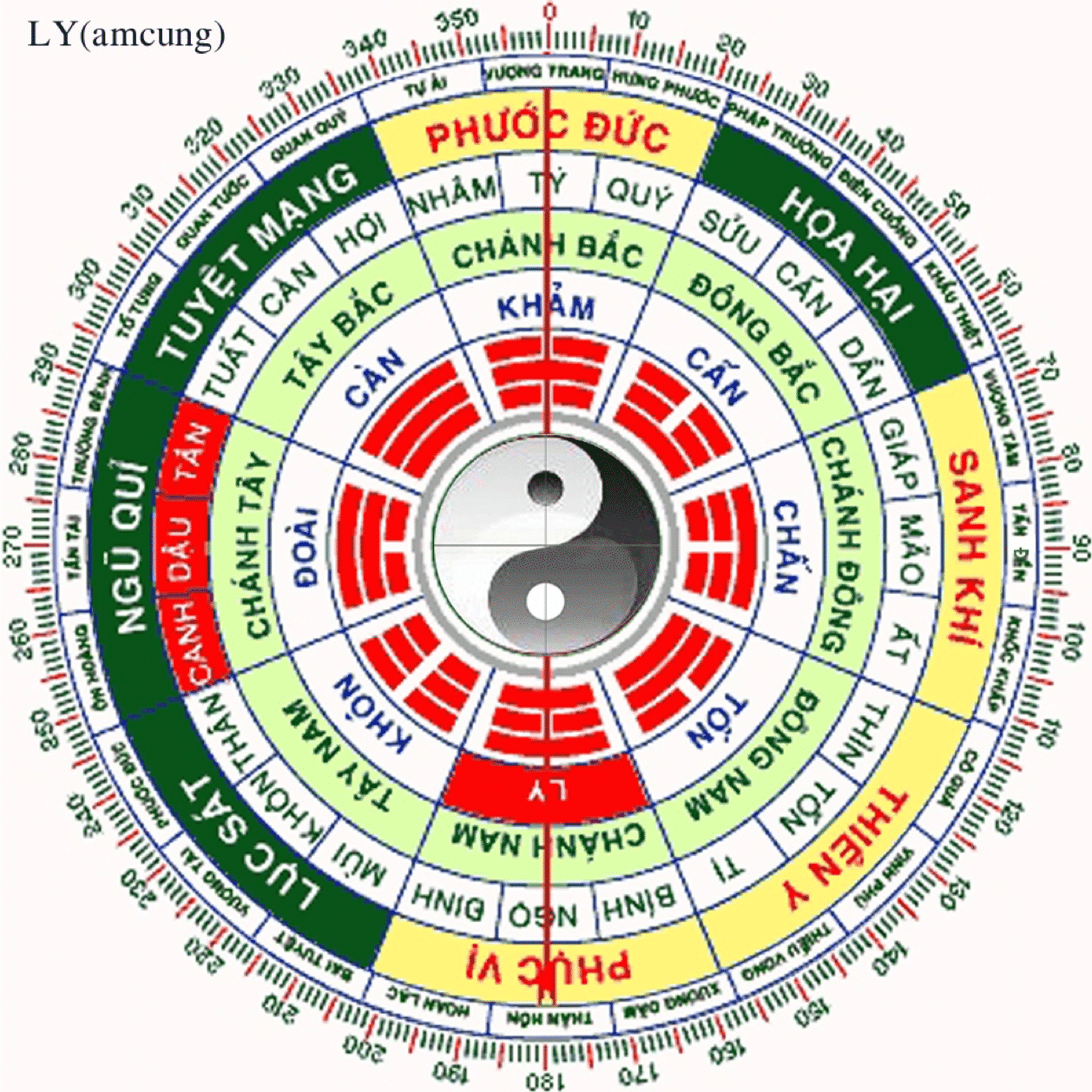 | Nam | Khảm | Ly | Cấn | Đoài | Càn | Khôn | Tốn | Chấn | Khôn |