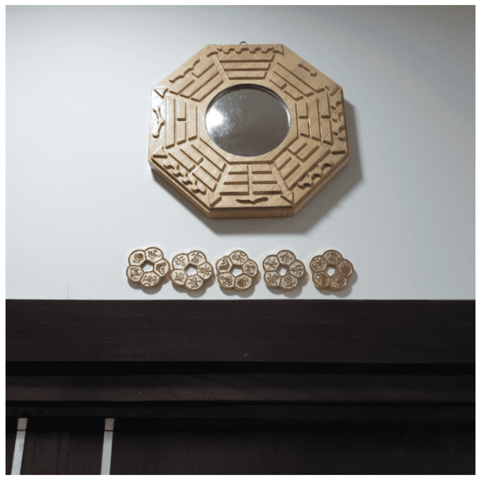 - Lưu ý: Bất kỳ may mắn, sinh khí nào đi vào từ nơi có treo gương bát quái cũng đều bị phân tán nếu treo gương bát quái ở cửa chính.
